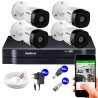01 - DVR Intelbras MHDX 1104 Multi HD - 04 Canais 1080p Lite + 1 Canais 2Mp IP​​​​04 - Câmera Intelbras HD 720p VHD 1010 B G5 com Lente 3,6mm, Visão Noturna 10m, Bullet Resistente à Chuva IP6601 - Cabo Coaxial Flexível RF4mm + Bipolar 2x26 AWG, 85% Malha, Bobina 100m04 - Fonte Chaveada 12V 1A Ideal para CFTV08 - Conector BNC Macho com Mola de parafuso04 - Conector P4 de Borne para Alimentação 12V