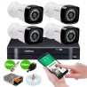 Kit com 4 Câmeras de Segurança: 04 Câmeras + 1 DVR Intelbras MHDX 1104 4 Canais + 1 Fonte Colmeia + 08 BNC e 04 P4 + 100m de bobina de Cabo Coaxial.
